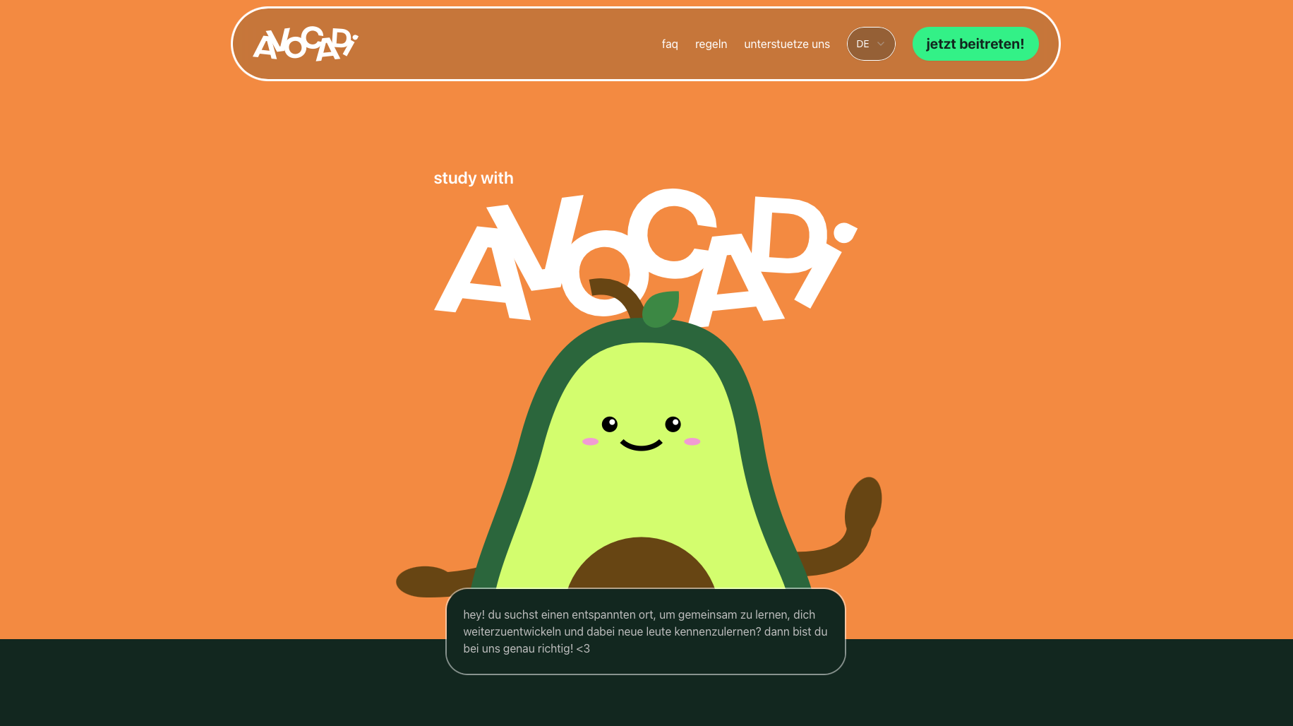 Eine Website für den Fluxer und Discord Server "study with avocadi" von Mo Riese.